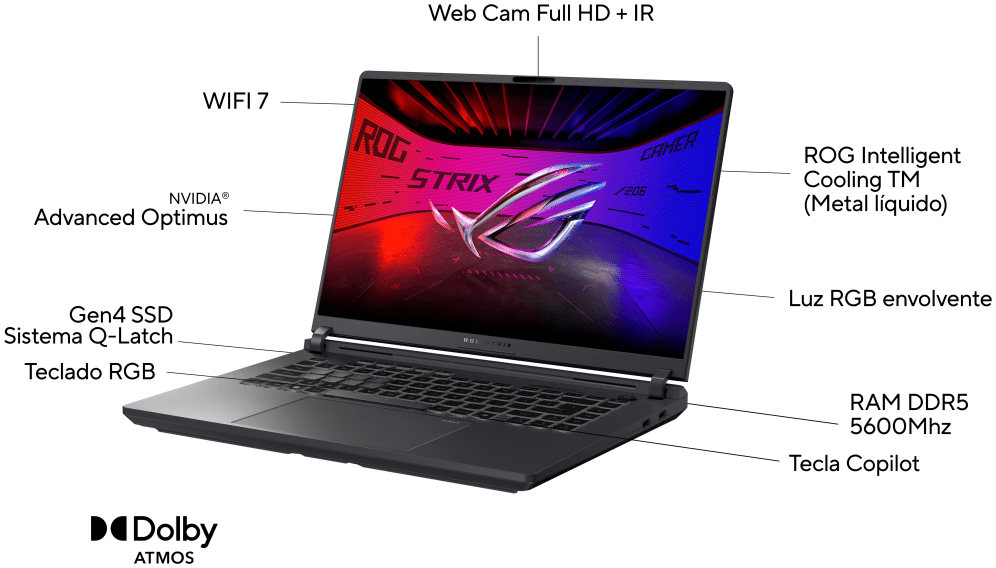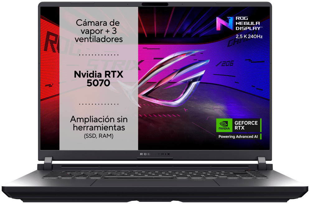 ASUS ROG Strix G16 G615JPR-S5003 – Ordenador Portátil Gaming de 16″ WQXGA 240Hz (Intel Core i7-14650HX, 32GB RAM, 1TB SSD, NVIDIA RTX 5070 8GB, Sin Sistema Operativo) Gris Eclipse – Teclado QWERTY español. Tipo de producto: Portátil, Factor de forma: Concha. Familia de procesador: Intel® Core™ i7, Modelo del procesador: i7-14650HX. Diagonal de la pantalla: 40,6 cm (16″), Tipo HD: WQXGA, Resolución de la pantalla: 2560 x 1600 Pixeles. Memoria interna: 32 GB, Tipo de memoria interna: DDR5-SDRAM. Capacidad total de almacenaje: 1 TB, Unidad de almacenamiento: SSD. Modelo de adaptador gráfico incorporado: Intel® UHD Graphics, Modelo de adaptador de gráficos discretos: NVIDIA GeForce RTX 5070. Color del producto: Gris. Peso: 2,73 kg