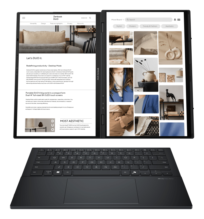 ASUS Zenbook Duo OLED UX8406CA-QL336W – Ordenador Portátil 14″ WUXGA (Intel Core Ultra 7 255H, 32GB RAM, 1TB SSD, Arc 140T, Windows 11 Home) Gris Tintero – Teclado QWERTY español. Tipo de producto: Híbrido (2-en-1), Factor de forma: Convertible (extraíble). Familia de procesador: Intel Core Ultra 7, Modelo del procesador: 255H. Diagonal de la pantalla: 35,6 cm (14″), Tipo HD: WUXGA, Resolución de la pantalla: 1920 x 1200 Pixeles, Pantalla táctil. Memoria interna: 32 GB, Tipo de memoria interna: LPDDR5x-SDRAM. Capacidad total de almacenaje: 1 TB, Unidad de almacenamiento: SSD. Modelo de adaptador gráfico incorporado: Intel Arc 140T. Sistema operativo instalado: Windows 11 Home. Color del producto: Gris