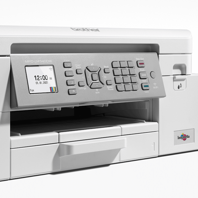Brother MFC-J4340DWE. Tecnología de impresión: Inyección de tinta, Impresión: Impresión a color, Resolución máxima: 1200 x 4800 DPI. Copiando: Copia a color, Resolución máxima de copia: 1200 x 2400 DPI. Escaneando: Escaneo a color, Resolución óptica de escáner: 1200 x 2400 DPI. Enviando por fax: Fax a color. Funciones dúplex: Copiar, Imprimir, Escanear. Tamaño máximo de papel ISO A-series: A4. Wifi. Impresión directa. Color del producto: Blanco