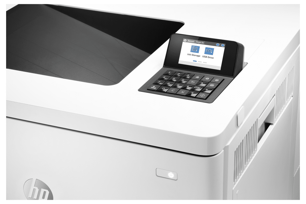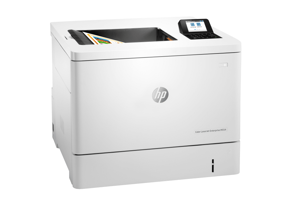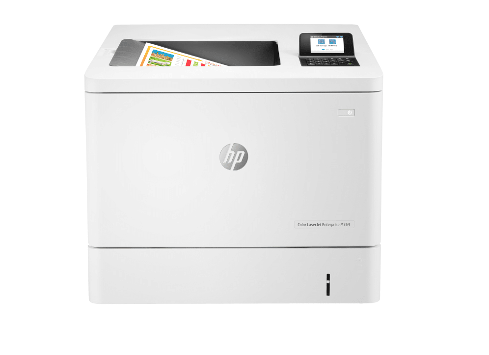 HP Color LaserJet Enterprise LaserJet Enterprise M554dn Color Impresora, Solo Ethernet; A doble cara. Tecnología de impresión: Laser, Color. Número de cartuchos de impresión: 4, Ciclo de trabajo (máximo): 80000 páginas por mes. Resolución máxima: 1200 x 1200 DPI. Tamaño máximo de papel ISO A-series: A4. Velocidad de impresión (negro, calidad normal, A4/US Carta): 33 ppm, Impresión dúplex. Pantalla: LCD. Listo para redes. Color del producto: Blanco