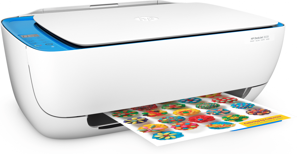 HP DeskJet 3639 All-in-One Printer. Tecnología de impresión: Inyección de tinta térmica, Impresión: Impresión a color, Resolución máxima: 4800 x 1200 DPI, Velocidad de impresión (color, calidad normal, A4/US Carta): 6 ppm. Copiando: Copia a color, Resolución máxima de copia: 600 x 300 DPI. Escaneando: Escaneo a color, Resolución óptica de escáner: 1200 x 1200 DPI. Tamaño máximo de papel ISO A-series: A4. Wifi. Impresión directa. Color del producto: Azul, Blanco