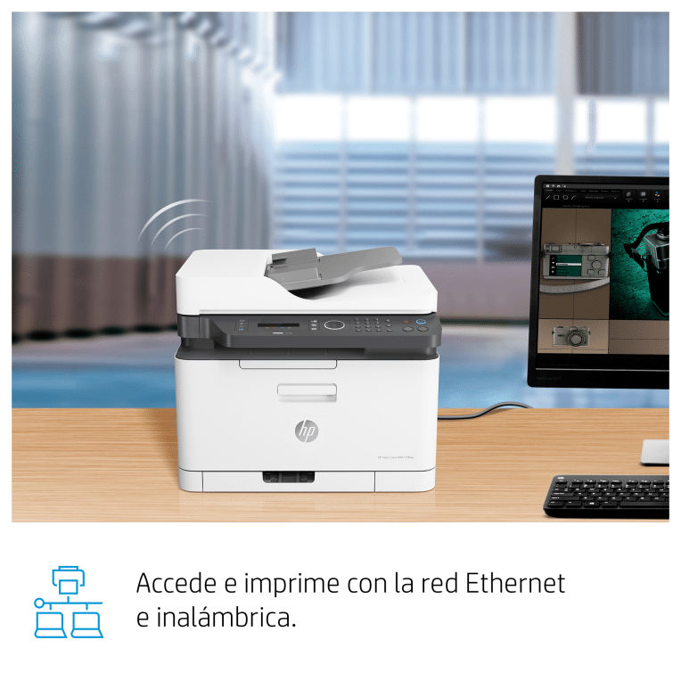 HP Color Laser Impresora multifunción 179fnw, Color, Impresora para Imprima, copie, escanee y envíe por fax, Escanear a PDF. Tecnología de impresión: Laser, Impresión: Impresión a color, Resolución máxima: 600 x 600 DPI, Velocidad de impresión (color, calidad normal, A4/US Carta): 4 ppm. Copiando: Copia a color, Resolución máxima de copia: 600 x 600 DPI. Escaneando: Escaneo a color, Resolución óptica de escáner: 600 x 600 DPI. Funciones dúplex: Imprimir (duplex manual). Tamaño máximo de papel ISO A-series: A4. Wifi. Impresión directa. Color del producto: Negro, Blanco