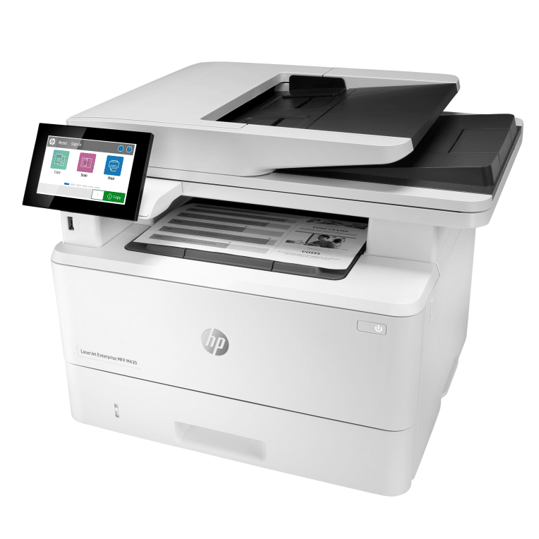 HP LaserJet Enterprise M430f Multifunction Blanco y negro Impresora, Solo Ethernet; Fotocopiadora, escáner. Tecnología de impresión: Laser, Impresión: Impresión en blanco y negro, Resolución máxima: 1200 x 1200 DPI. Copiando: Copias en blanco y negro. Escaneando: Escaneo a color, Resolución óptica de escáner: 600 x 600 DPI. Enviando por fax: Envío y recepción de faxes en blanco y negro. Funciones dúplex: Imprimir, Copiar. Tamaño máximo de papel ISO A-series: A4. Wifi. Color del producto: Blanco