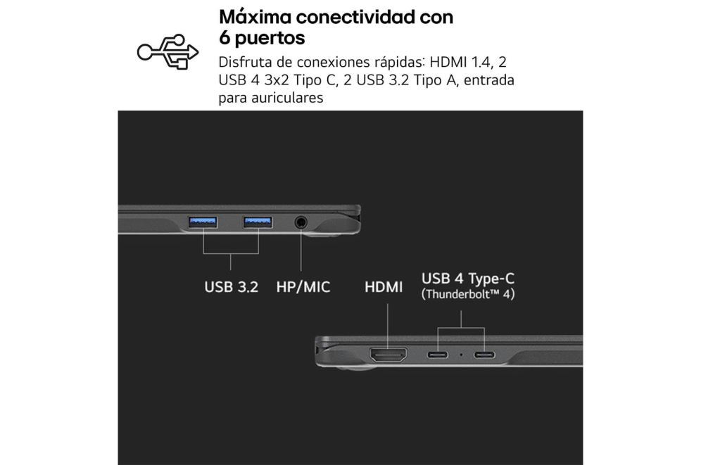 LG gram ofrece no solo varios puertos sino también 2 Thunderbolt™ 4 para la máxima escalabilidad.