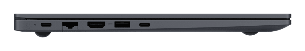 Pequeño pero poderoso: así es Galaxy Book4. Con una gran variedad de puertos de serie, podrás conectarlo todo: incorpora HDMI para dispositivos externos, dos puertos USB-A y dos USB-C, ranura microSD e, incluso, un puerto RJ45 para conexiones LAN de alta velocidad.